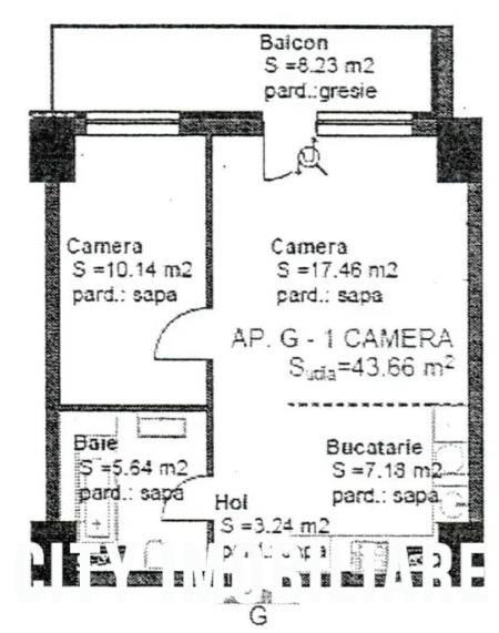 Compartimentare: Living open space cu bucatarie si loc de luat masa, baie, dormitor, balcon cu acces din living.